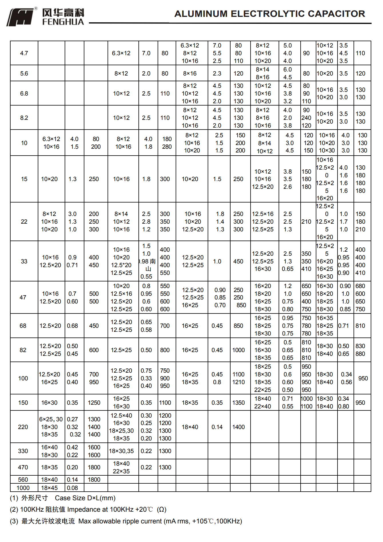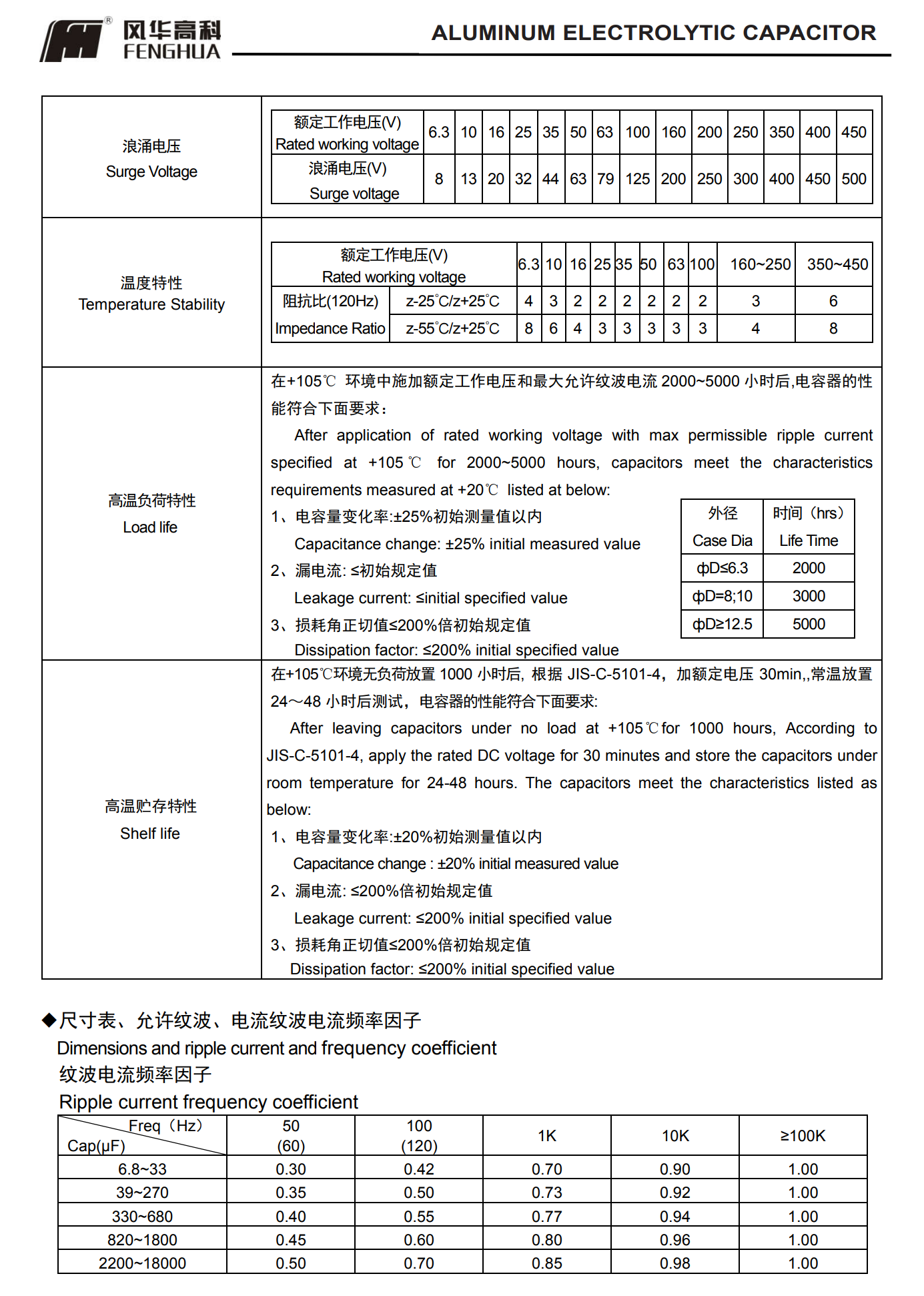 * 寿命: 105℃ 2000~5000 小时