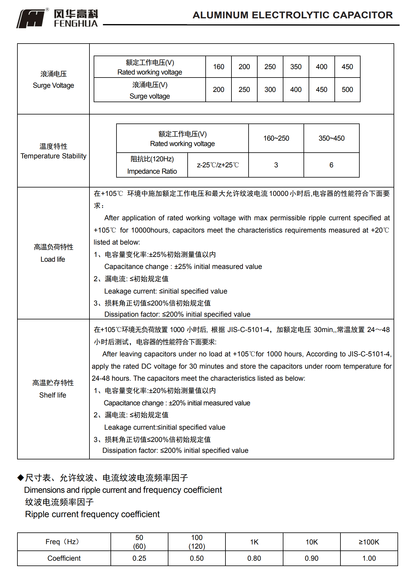 * 寿命: 105℃ 10000 小时